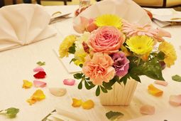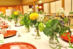 風情あるお部屋でお茶をたてての 料亭ならではの趣のある挙式です。 お抹茶とお菓子の費用として、 おひとり500円別途頂戴致します。