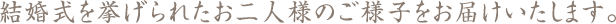 当日の二人のご様子をウエディングプランナーがレポートいたします。